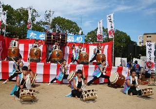 今回は「東日本大震災被災地応援」をテーマに開催され、和太鼓の演奏で会場のみなさんと被災地の復興を祈るという演出で「楽鼓組」、そして「鼓情炎」さんの太鼓演奏で舞台発表をしめくくりました。