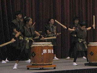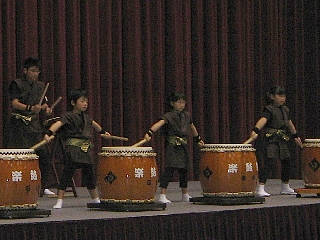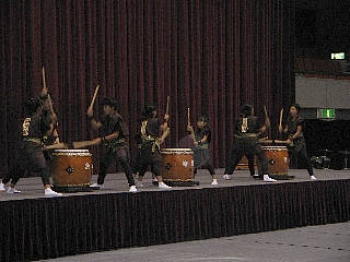 1曲目はオリジナル曲の「跳(はね)」、篠笛の透きとおった音色に会場はシーン[:!:] よし、つかみは[:OK:] あとは元気よく声をしっかり出して、太鼓を打つだけです。