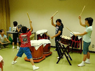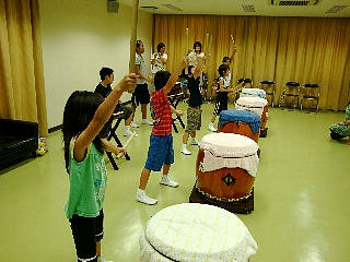 午前中の練習では新メンバーのR矢君に「跳」を1年先輩のGEN君に「ぶち合わせ」をメンバーみんなで指導し、そして小学5年生以上の大きい子たちで演奏する新曲(無題)の練習もしました。