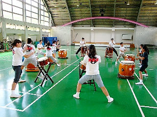 午後は「新曲」のつづきと、「連」をしました。「連」は、今までの曲とはちがい、2台の太鼓を並べて一人で打ったり音を順番につないでいく所がむずかしいけれど、がんばって練習していきたいですね[:ラブ:]