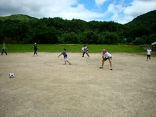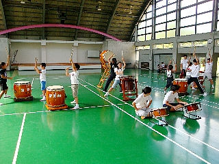 合宿所に着いていきなりサッカー[:!?:]川遊び[:!?:]と、とても元気に遊んで、和太鼓の練習は・・・[:?:]