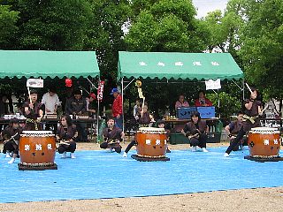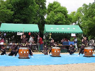 ?優じいじ?お手製の太鼓台がみんなの打ち鳴らす和太鼓の音をいい感じに響かせてくれたし、会場のお客さんたちも「かわいい」「上手や[:!:]」と大きな拍手をくれました。[:拍手:]