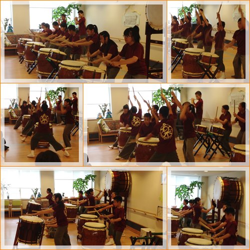 初めて太鼓をご覧になる方々が多く、準備の時から「すごいなぁ」「こりゃ大きな音が鳴るで」と演奏を楽しみにしてくださっているのが伝わってきました。
