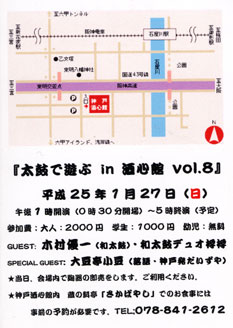 2013年楽鼓組最初の舞台は、1月27日(日)神戸酒心館で行われる「太鼓で遊ぶin酒心館vol.8」です。