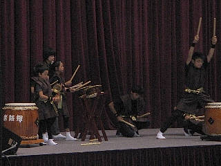 1曲目はオリジナル曲の「跳(はね)」、篠笛の透きとおった音色に会場はシーン[:!:] よし、つかみは[:OK:] あとは元気よく声をしっかり出して、太鼓を打つだけです。